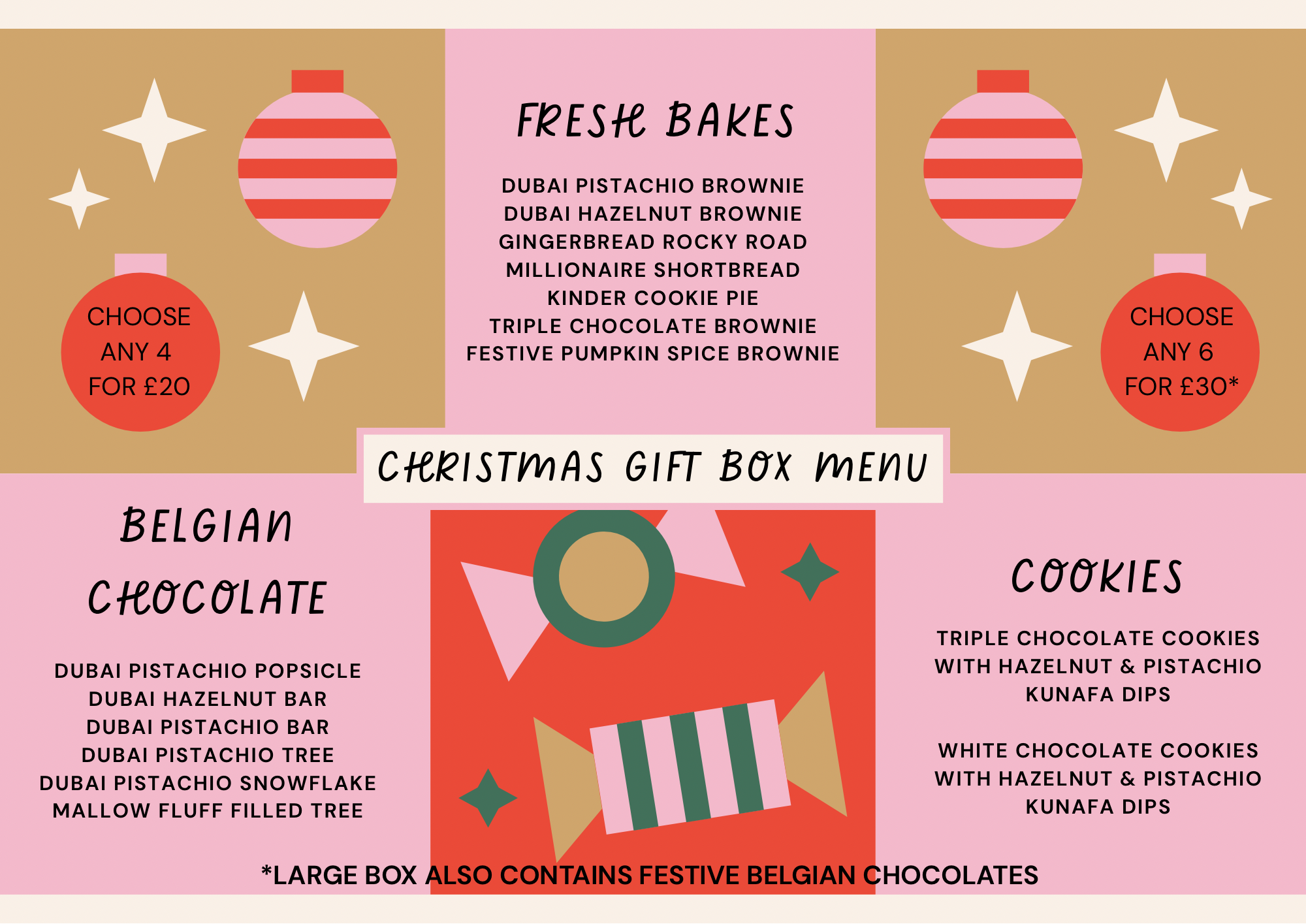 Build the perfect gift with our mix & match festive gift boxes. Available in two sizes, simply choose any 4 or 6 items from the menu to be beautifully presented in a gift box for a truly personal gift.