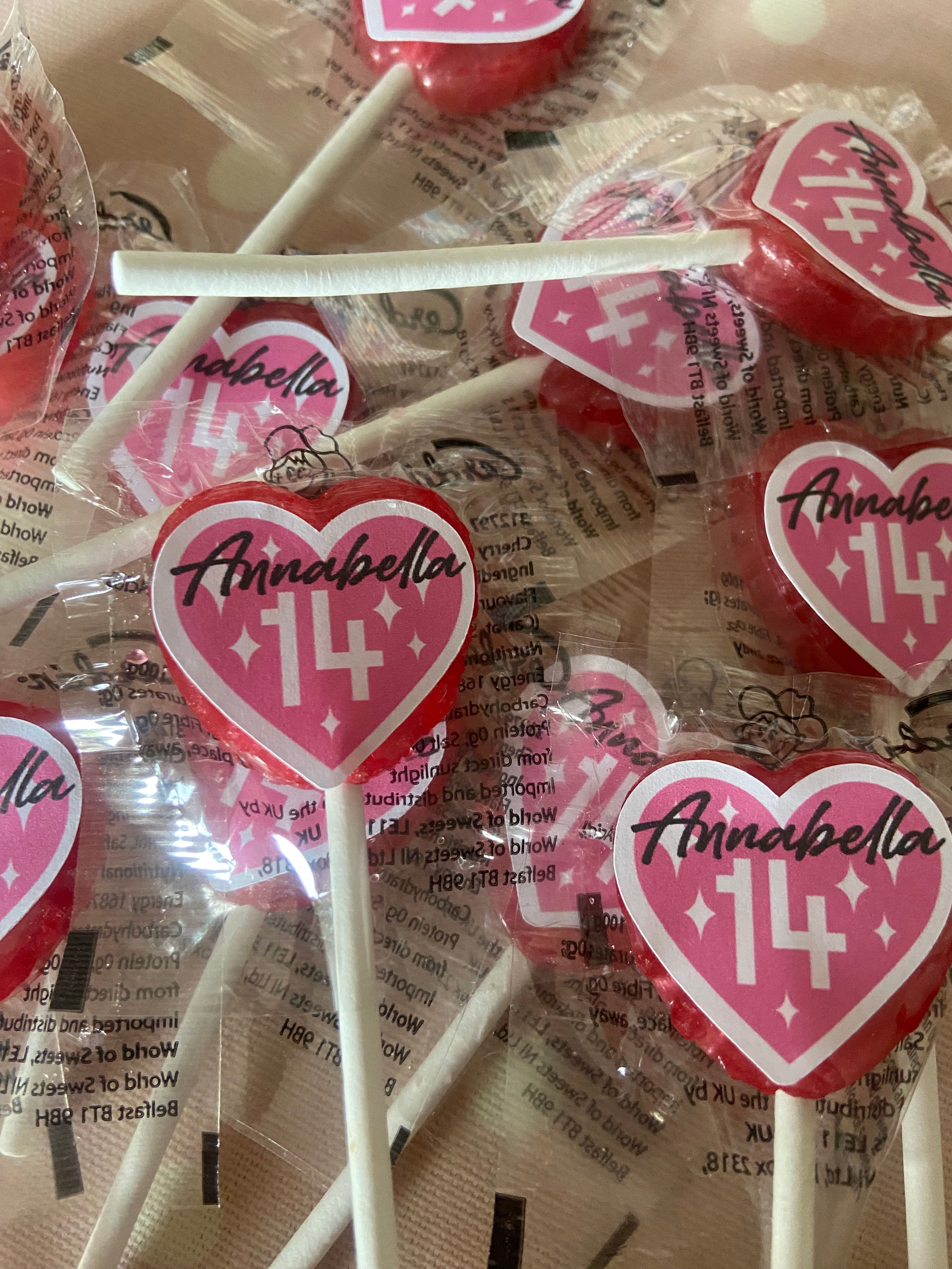 Our individually wrapped heart lollipops are finished with a personalised sticker, making them perfect gifts for birthday parties, wedding favours, and promotional giveaways