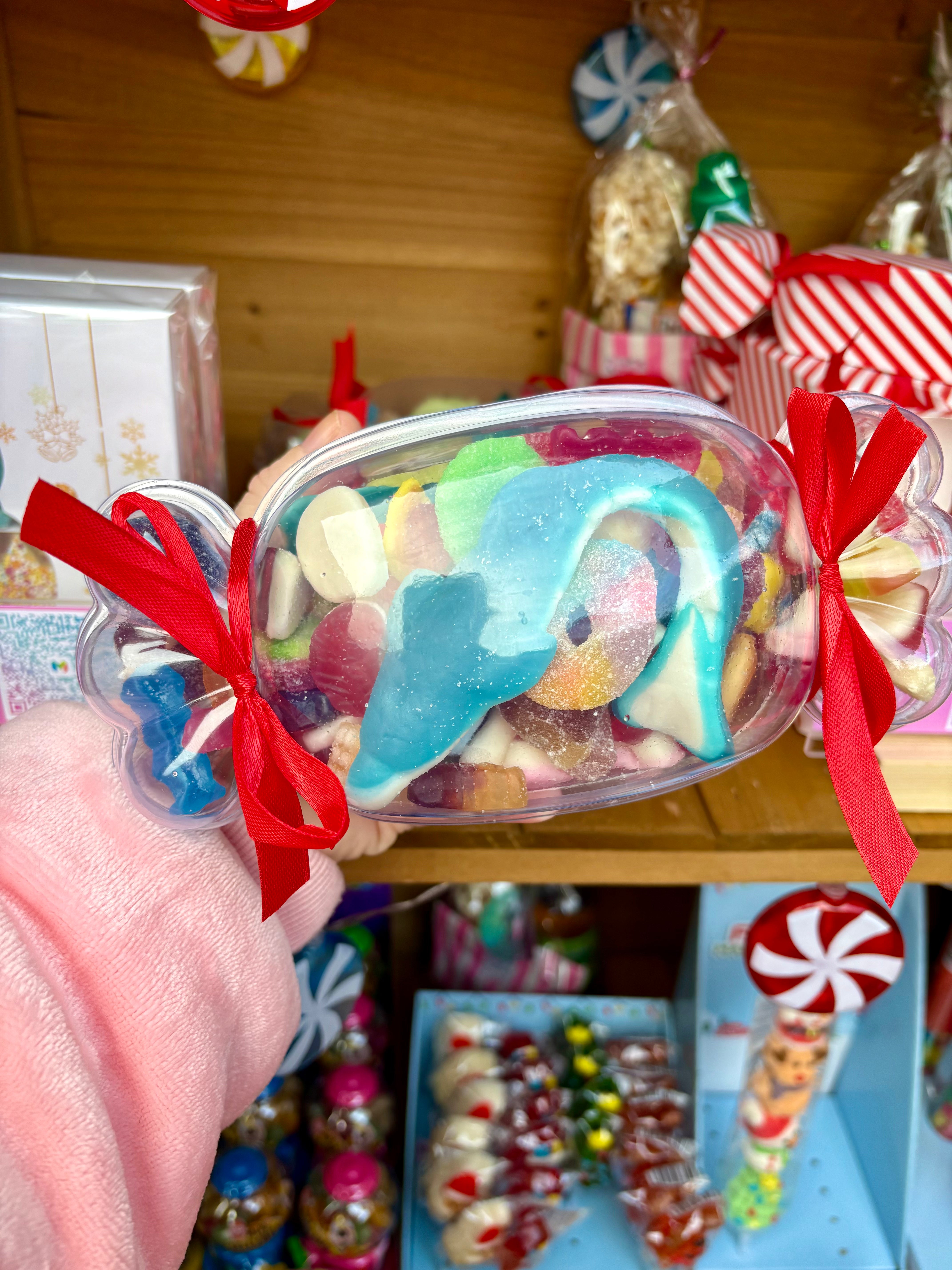 Filled with pick & mix favourites, our clear sweet design boxes are a perfect stocking filler or secret Santa gift.